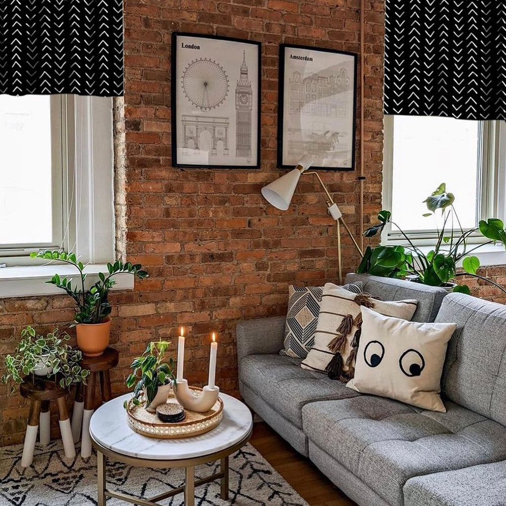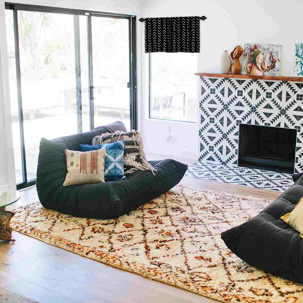 African Mud Black and white Boho blackout Valances for living room bedroom kitchen
