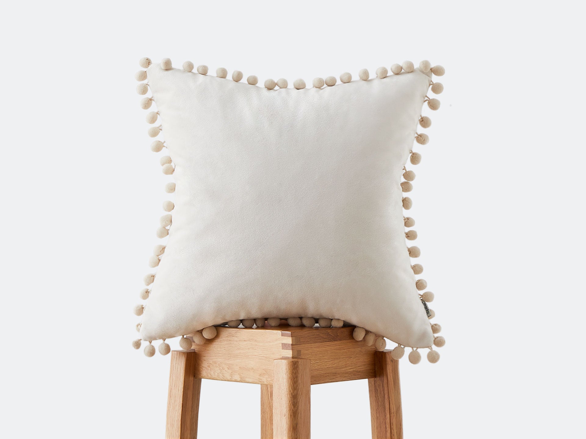 This decorative pillowcase is made of 100% yarn-dyed velvet in a boho pomspoms design. Style on the sofa with the matching throw – or layer with our other decorative pillows for an eclectic, textural look.