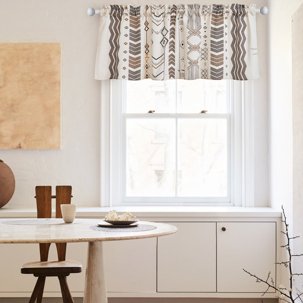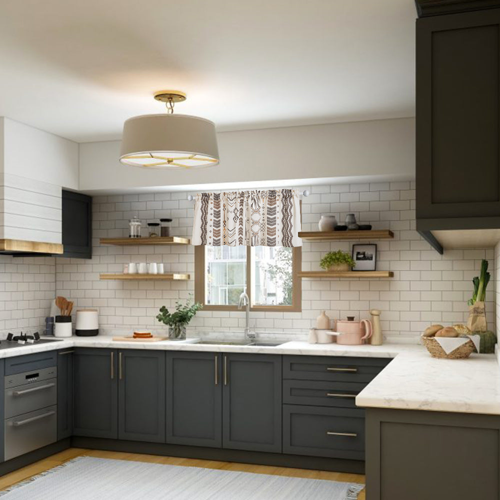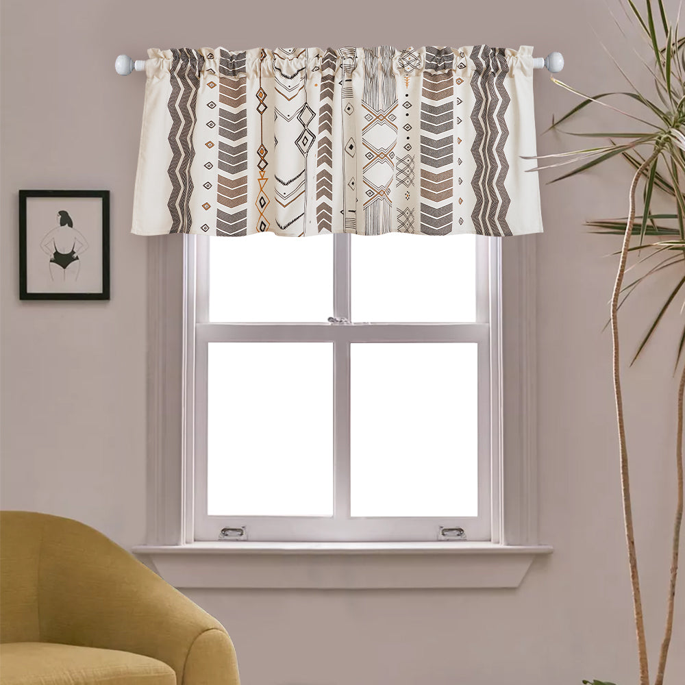 Boho Farmhouse Geometric Cotton Linen Semi-Blackout valance curtains
