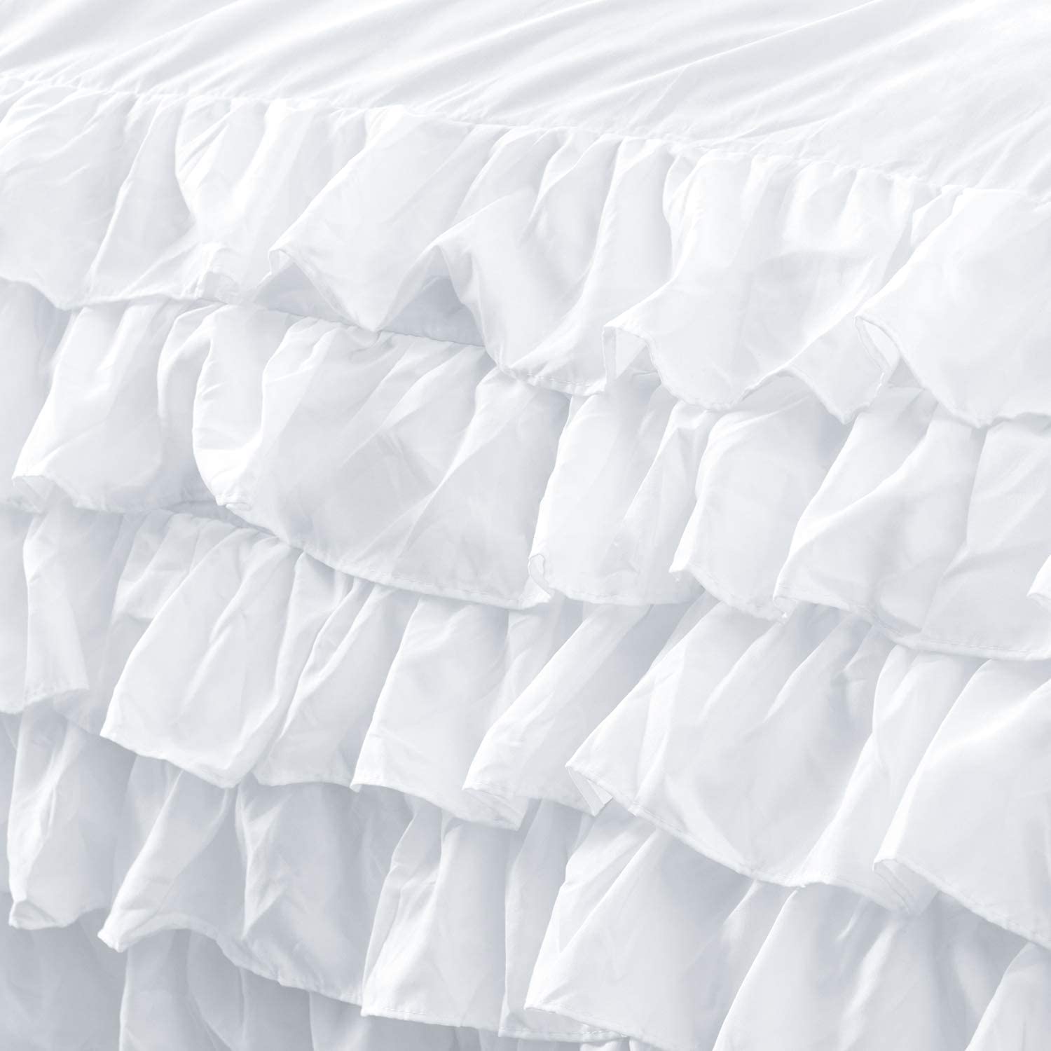 White Ruffle Duvet Cover Breathable Microfiber Bedding Set Zipper Closure