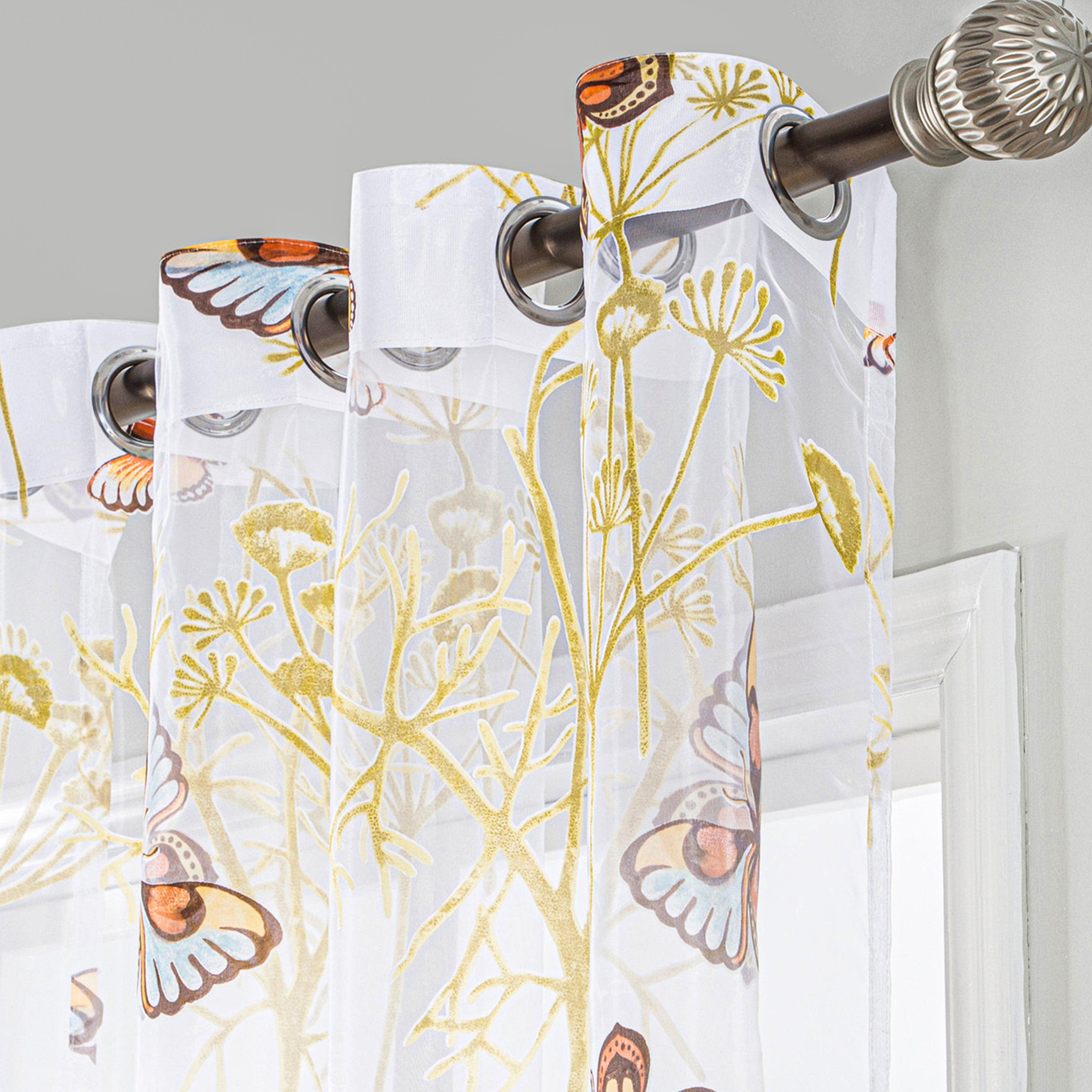 Customized Size-Butterfly Voile Sheer Curtains For Bedroom Living Room Nursery Grommet Window Curtains, 1 Panel