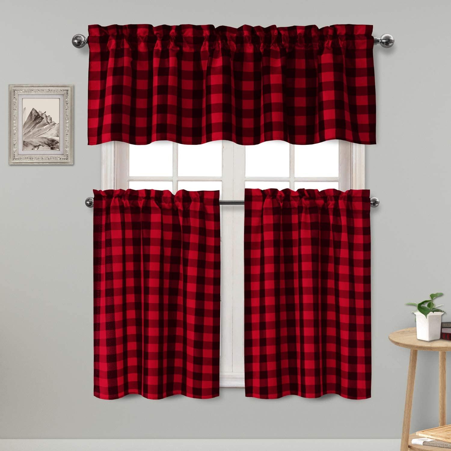 Topfinel Farmhouse Buffalo Semi Sheer Checkered Kitchen Window Curtains Sets