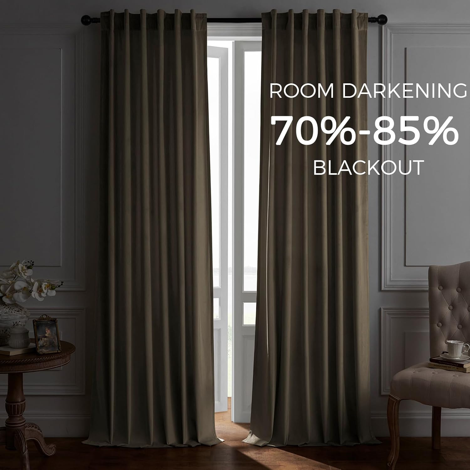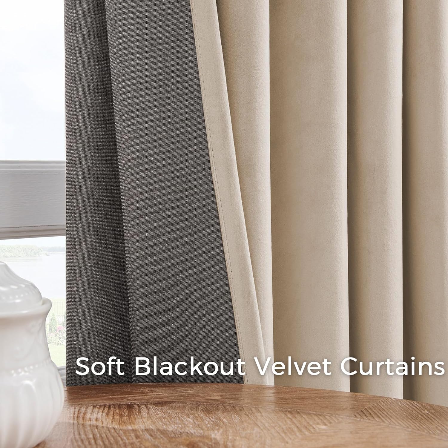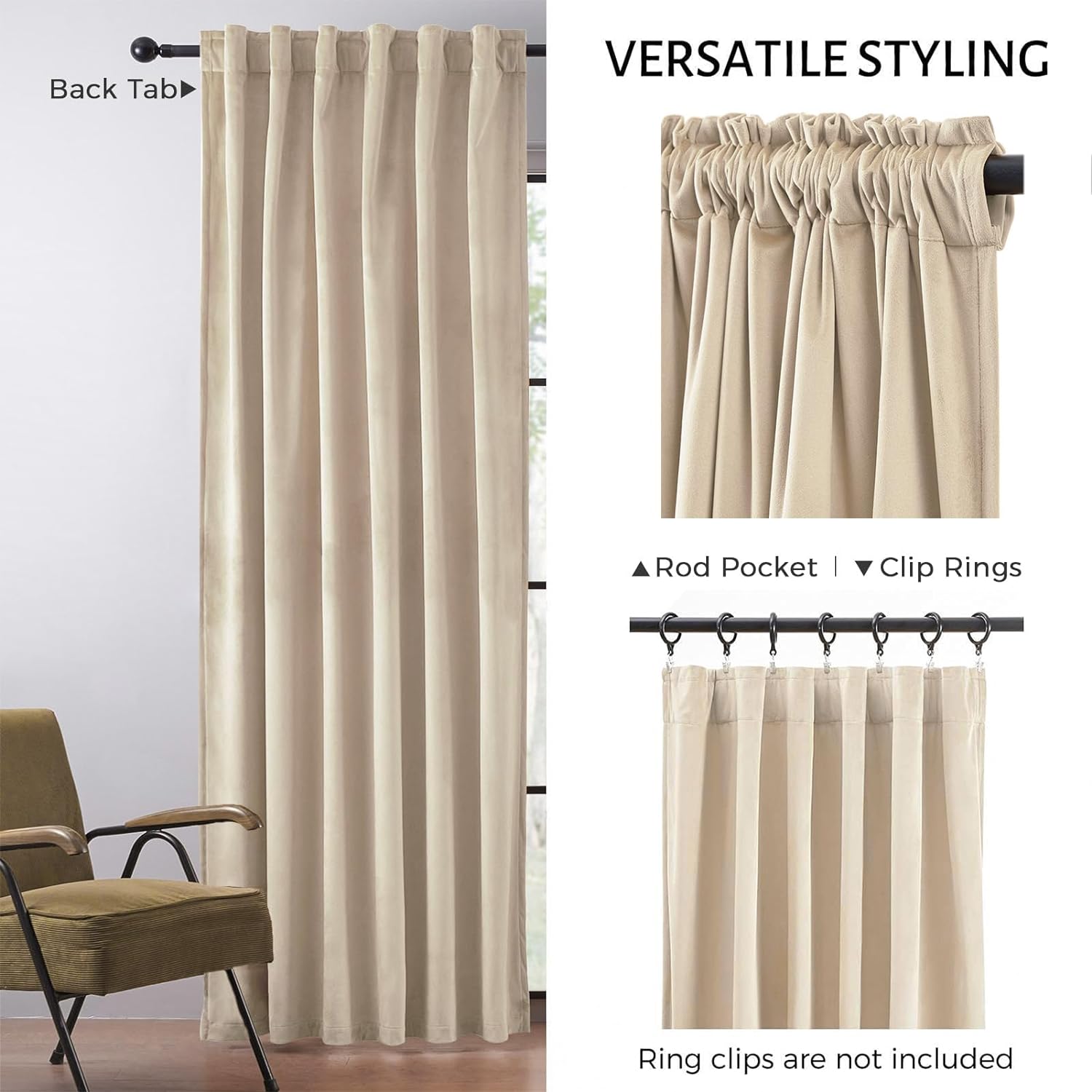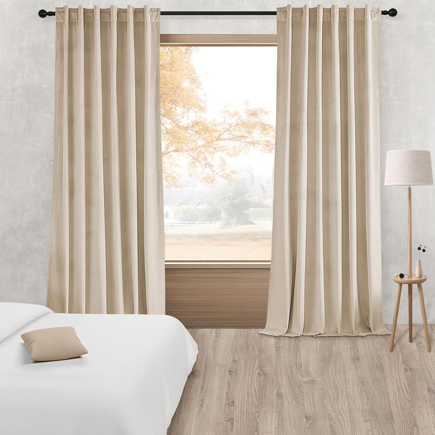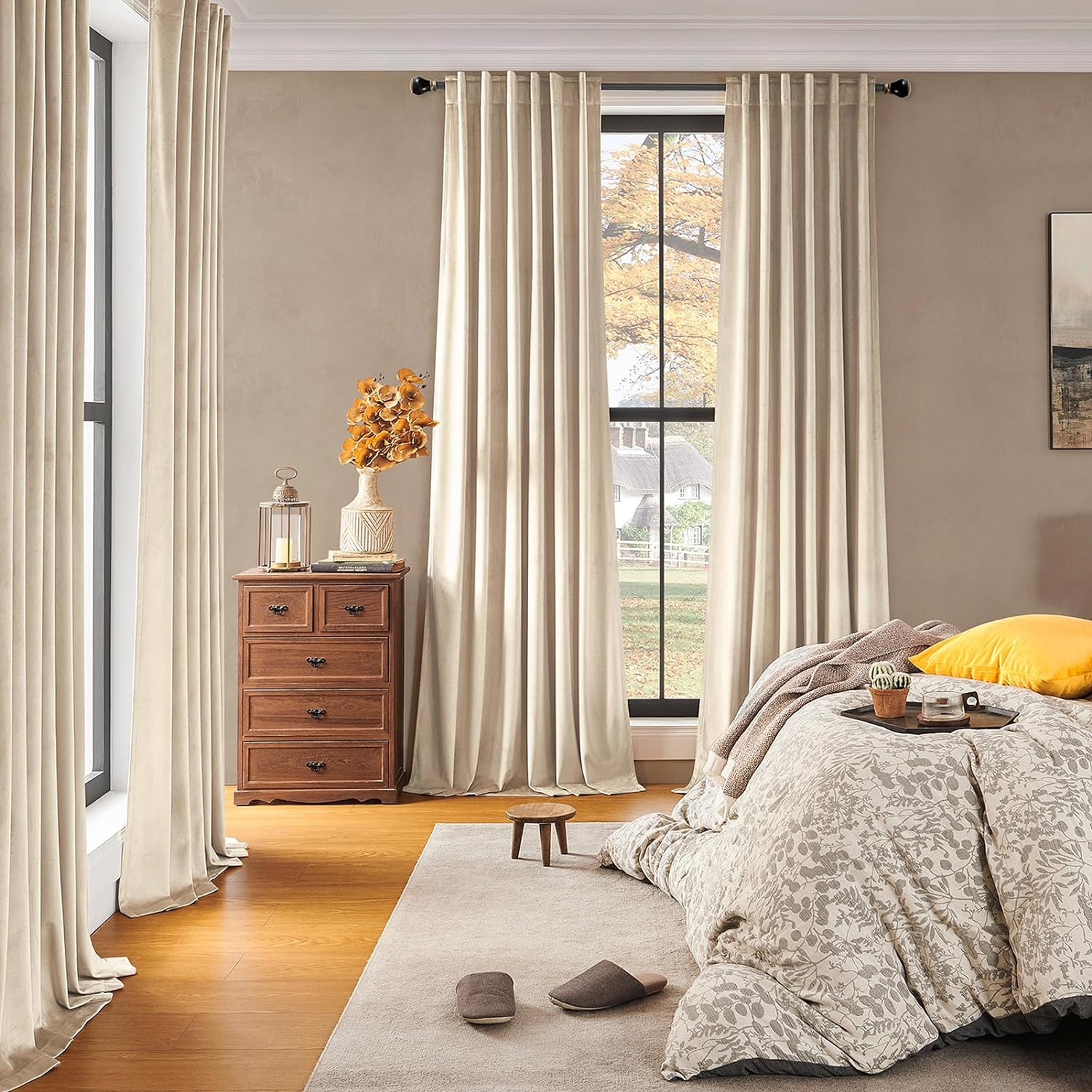 Topfinel Natural Blackout Velvet Curtains for Bedroom 108 Inches Length 2 Panels Set Thermal Insulated Noise Reducing Energy Saving Drapes for Living Room 108 Inches Long,9FT 2 Panels Burg,Beige