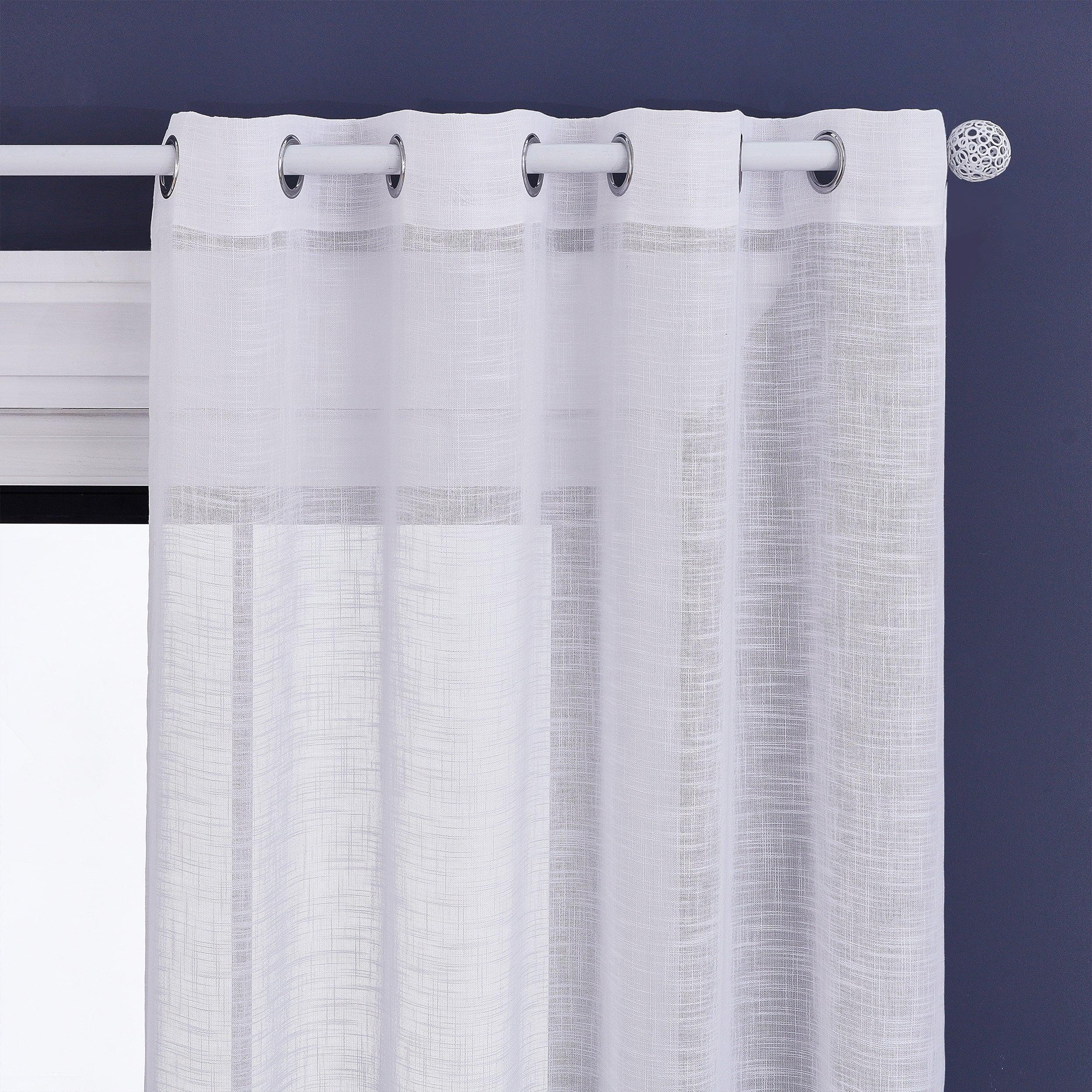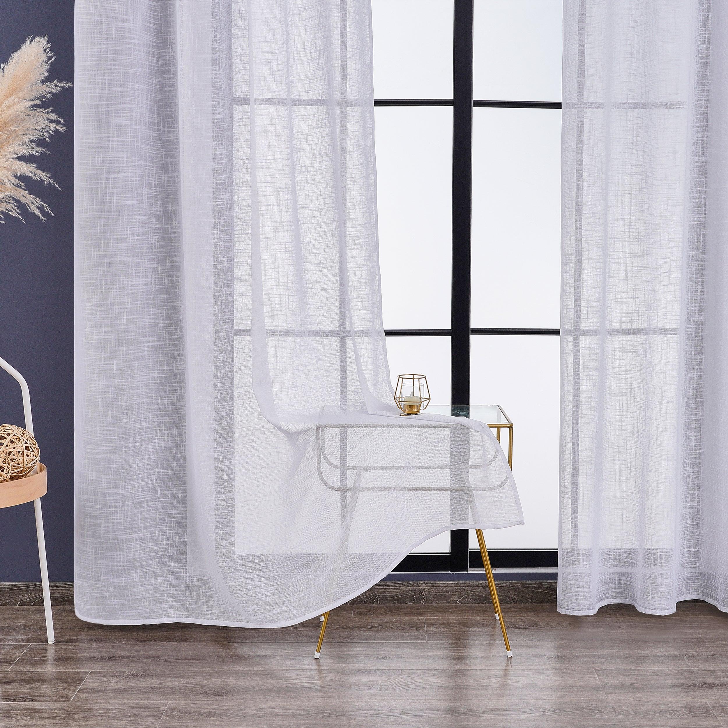 Size Customization -Voile White Linen Curtains With Eyelets For Home,Bedroom,1 Panel
