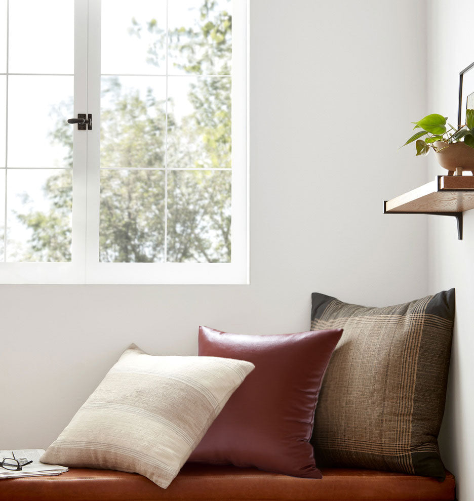 With a luxurious leather front and backing, this durable pillow makes a refined accent. Add a hint of supple texture to a light and airy bedroom, or as an accent in the living room for a dynamic, curated look.