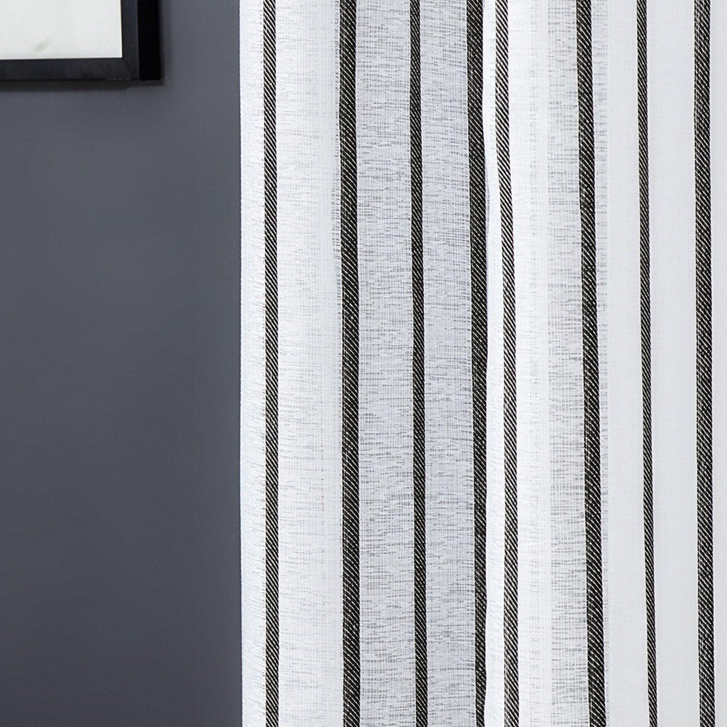 Pleated Ticking Striped Valances Curtains Faux Linen Semi Sheer Kitchen curtains