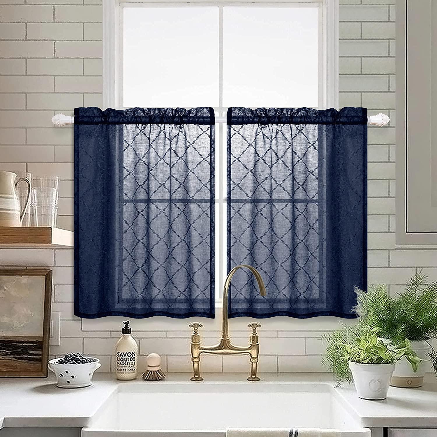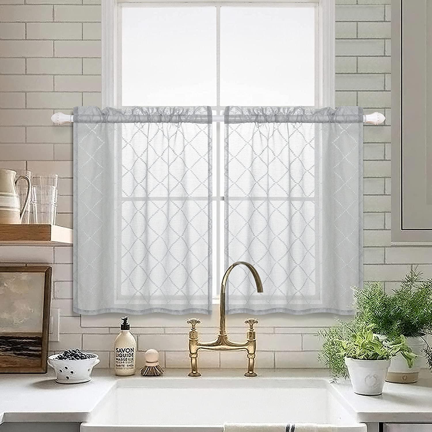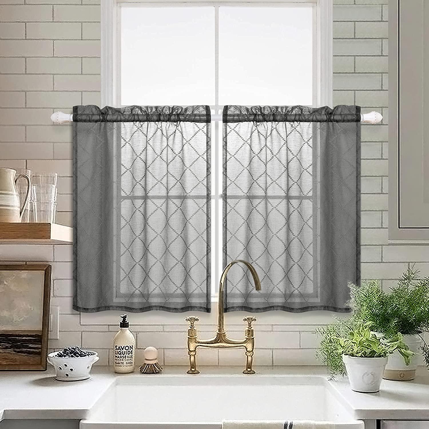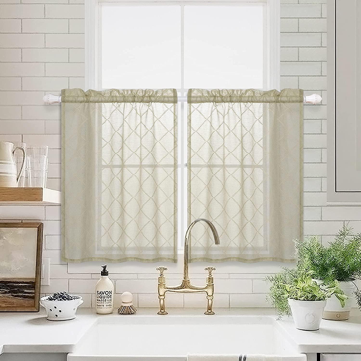 Topfinel Sheer Lace Cafe&Tiers Curtains for Kitchen