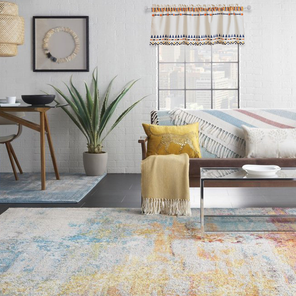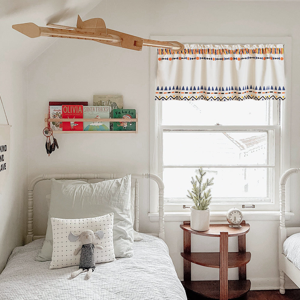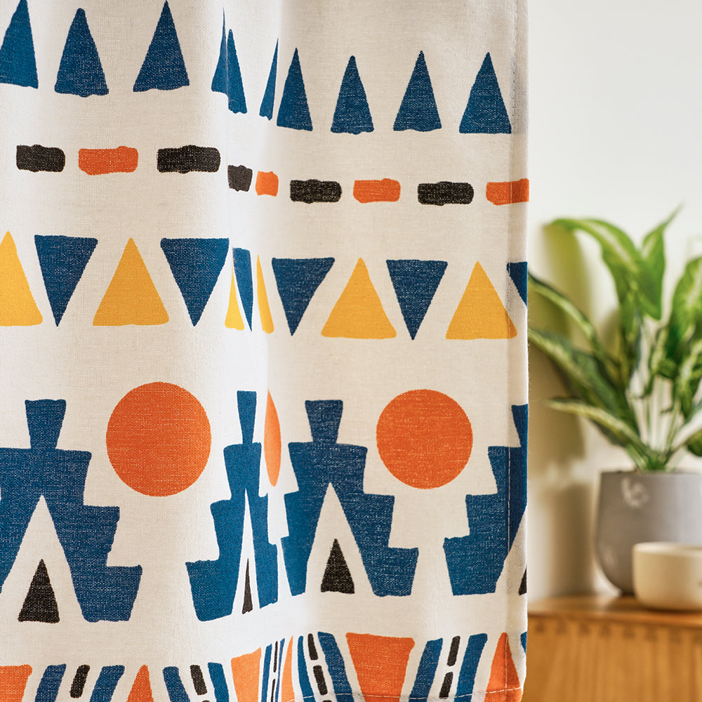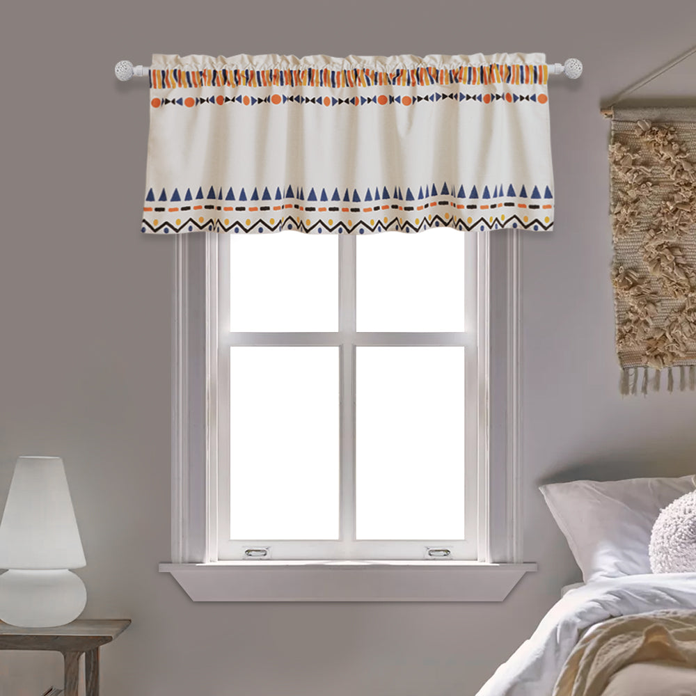 Bohemian Geometric Print Semi-Blackout cotton linen valance curtains for living bedroom