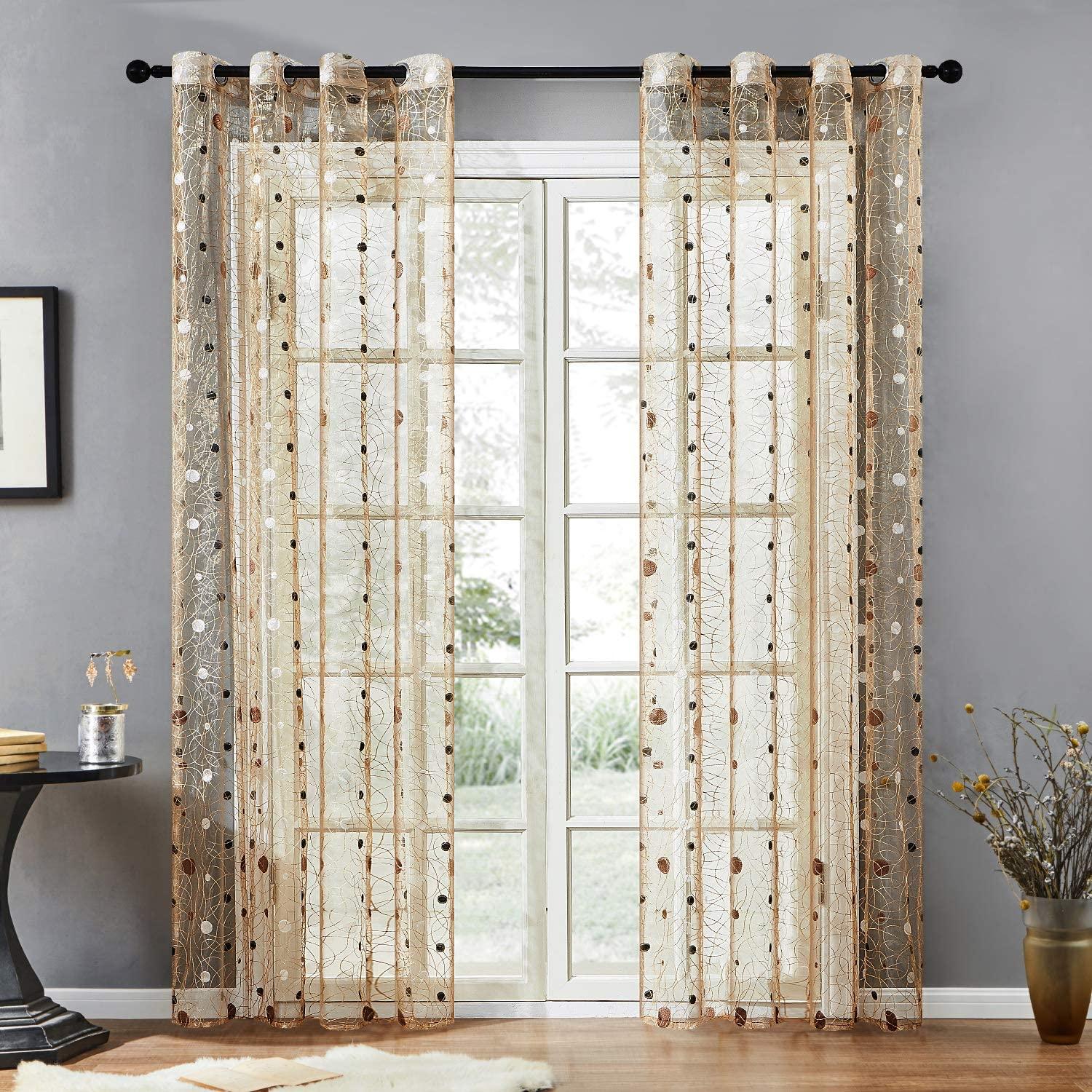 Classic Curtain Designs- Embroidered White Sheer Drapes,Dot Voile Curtains For Living Room,Bedroom,Nursery Grommet Window Curtains,1 Panel