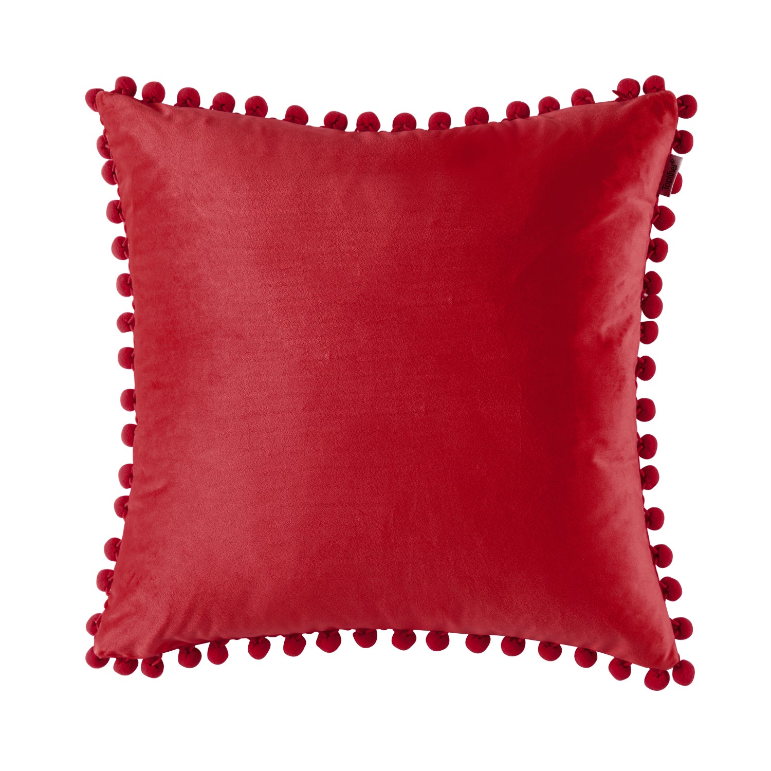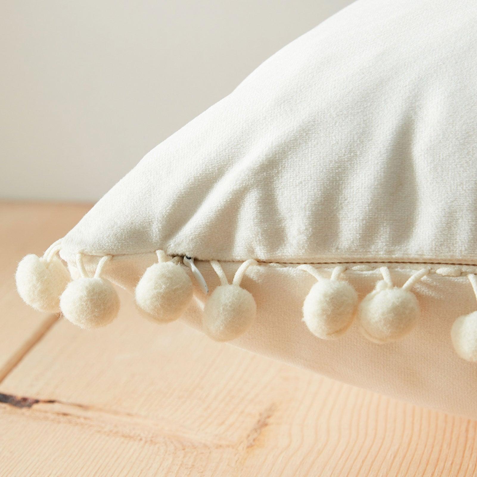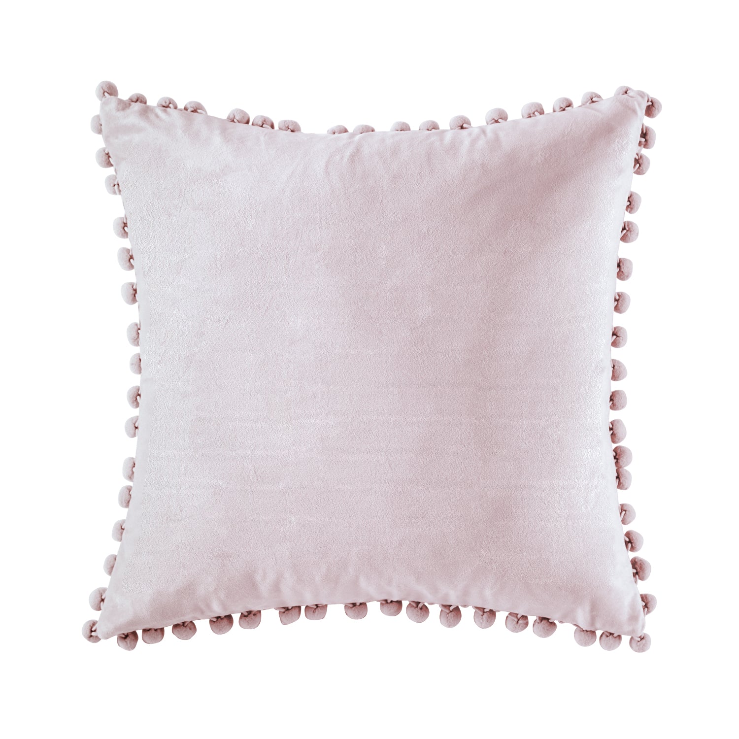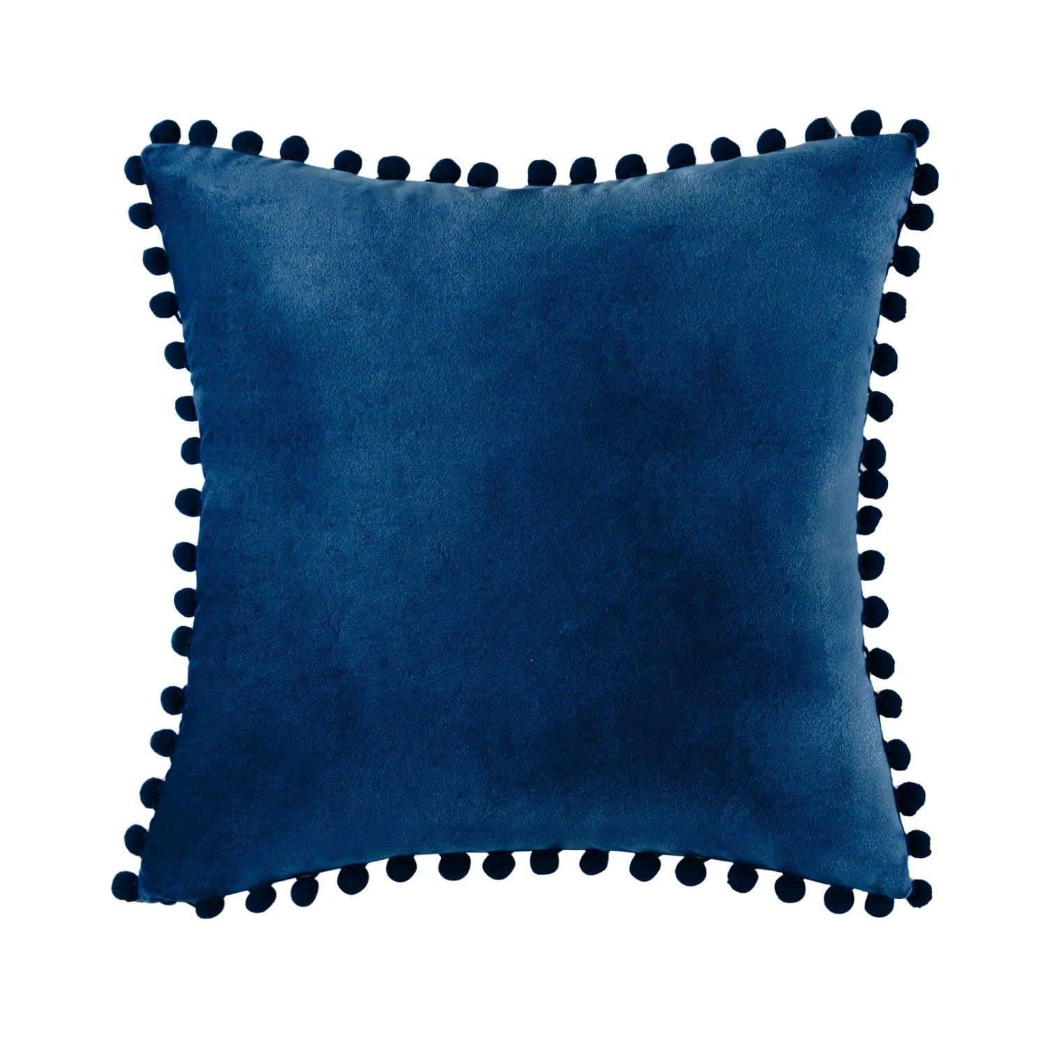 Square Velvet Decorative Throw Pillow Covers with Pom-poms