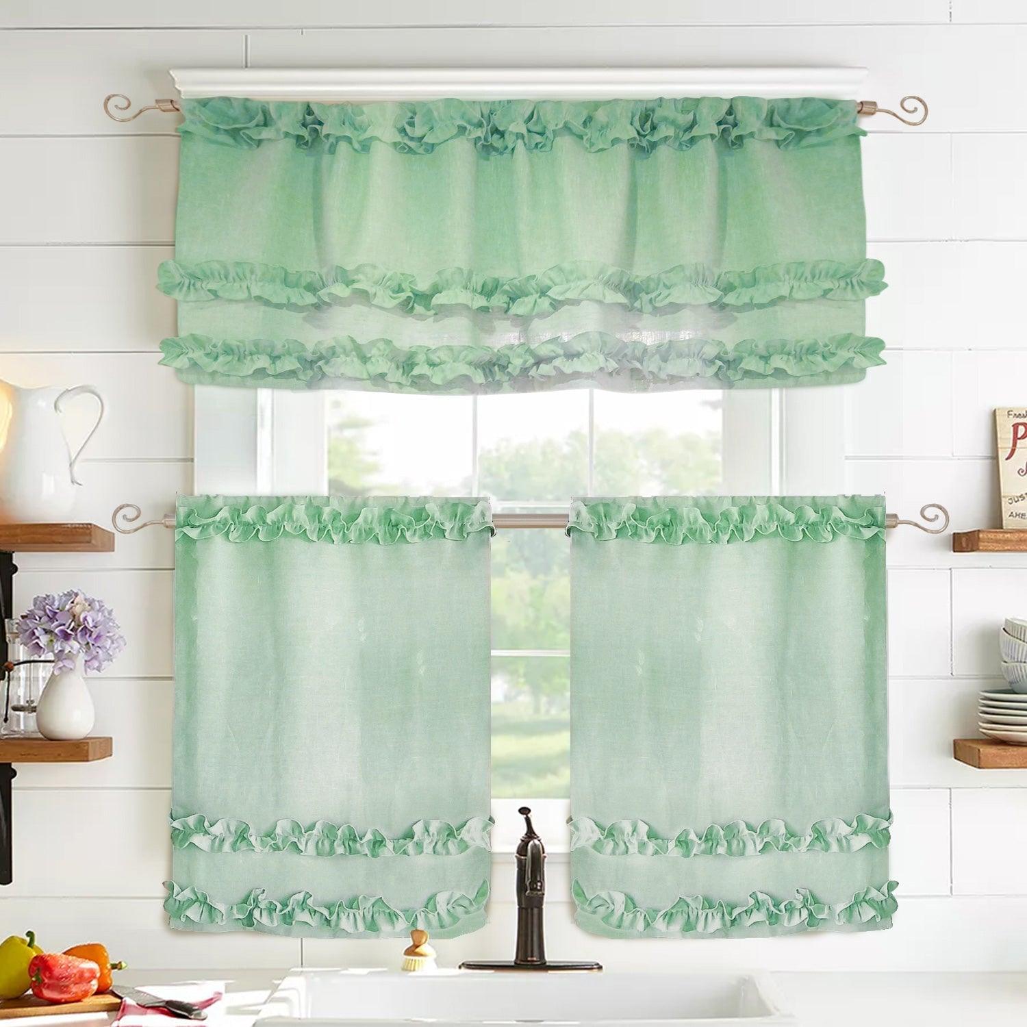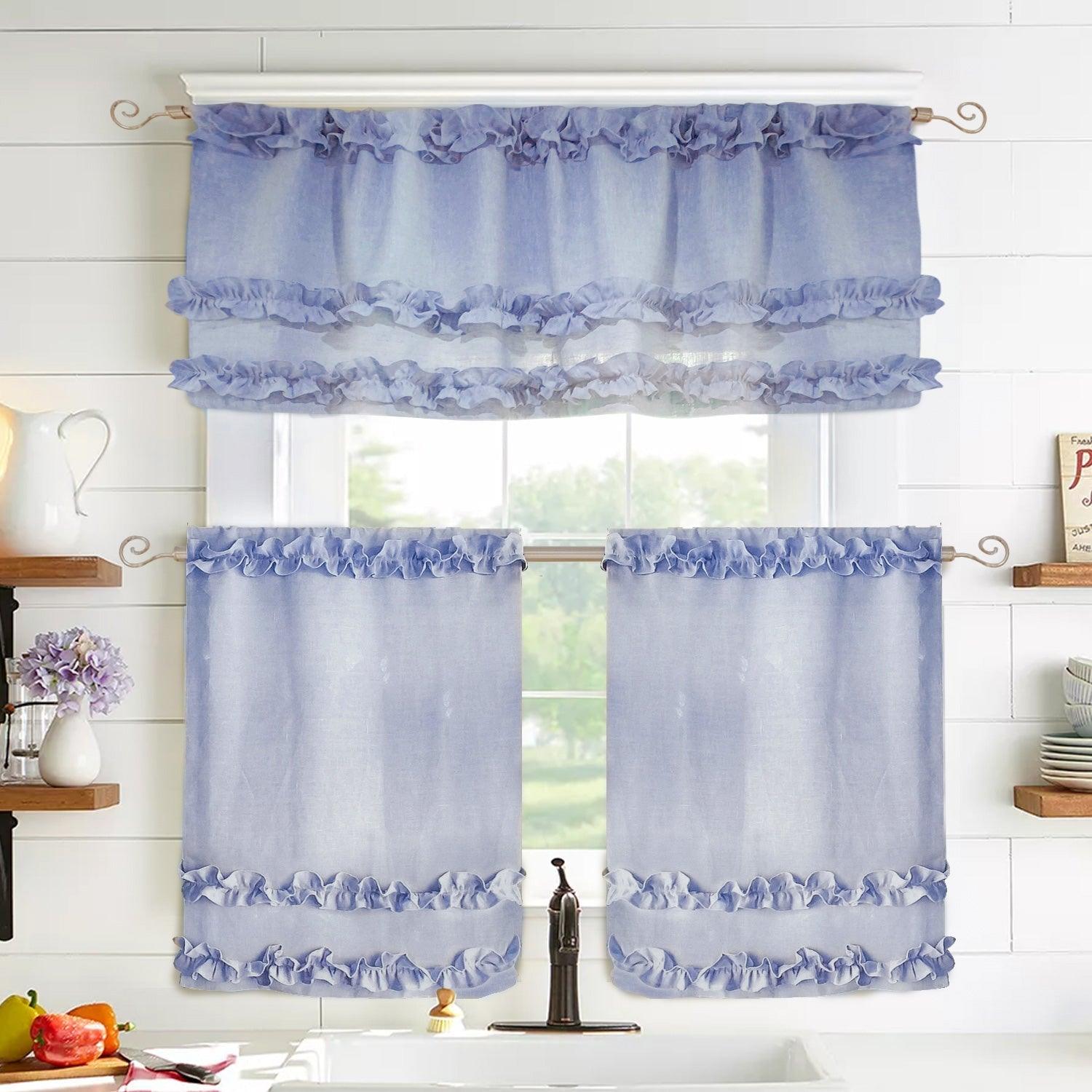 Topfinel Farmhouse Linen Kitchen Curtains Sets Three Ruffles