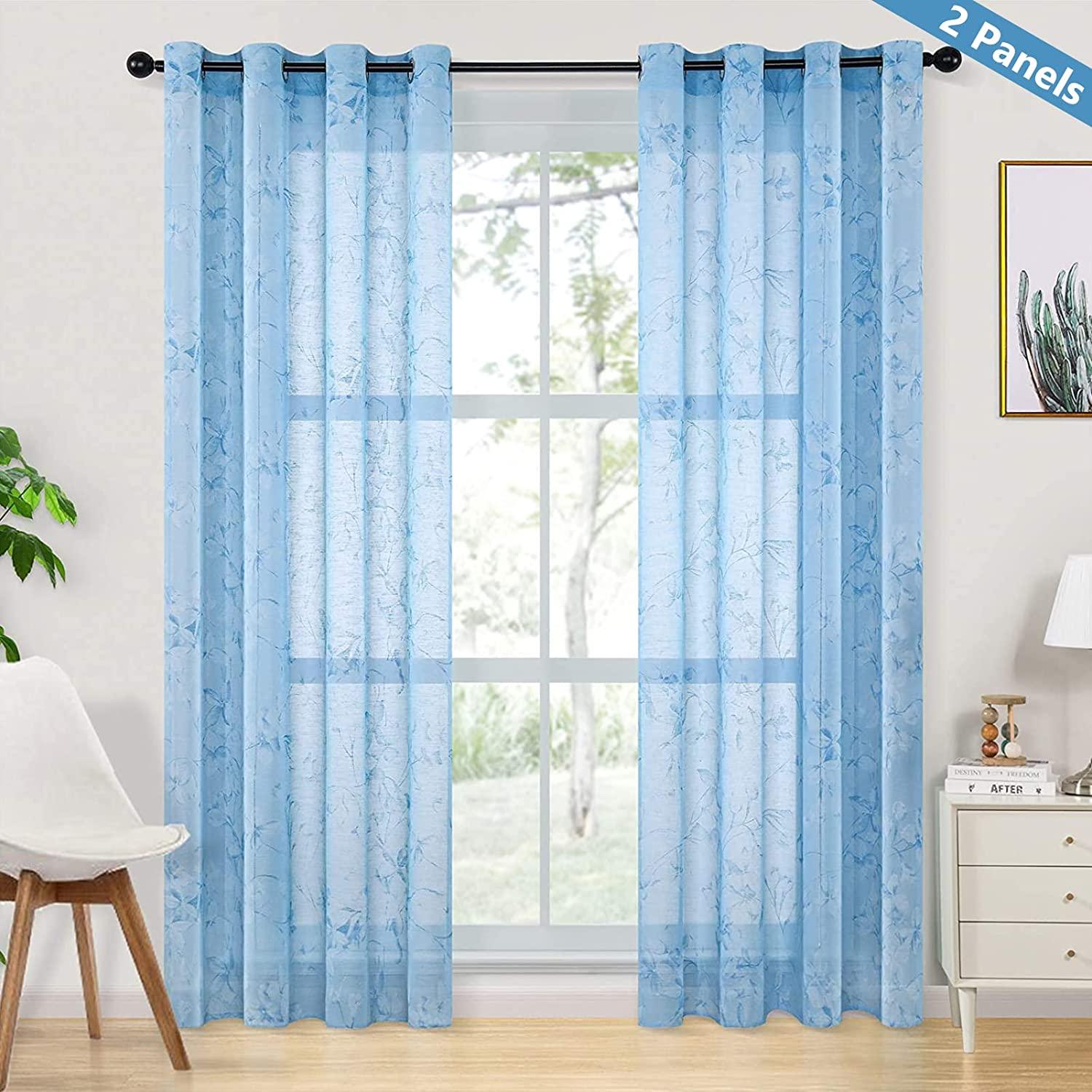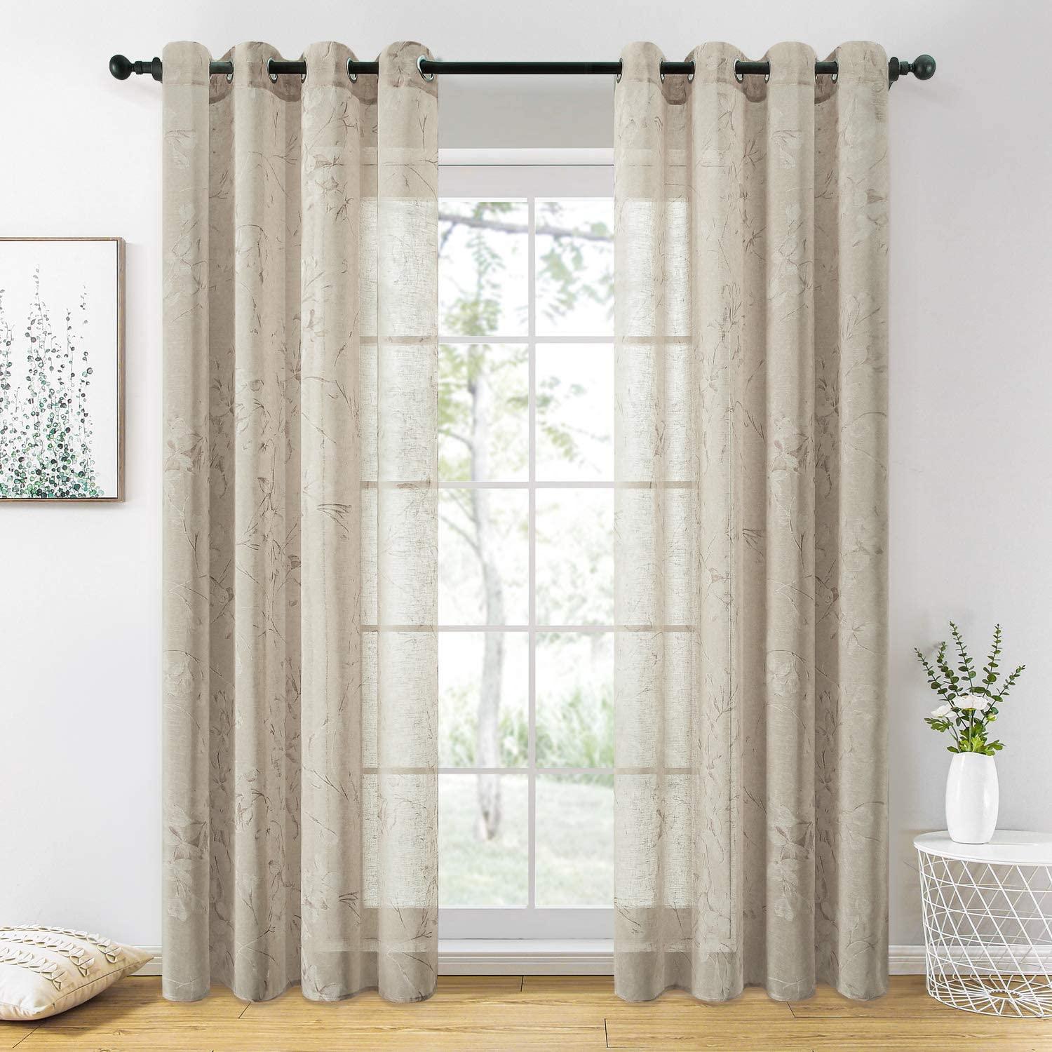 Topfinel panels Linen Textured Sheer Floral Curtains for Bedroom