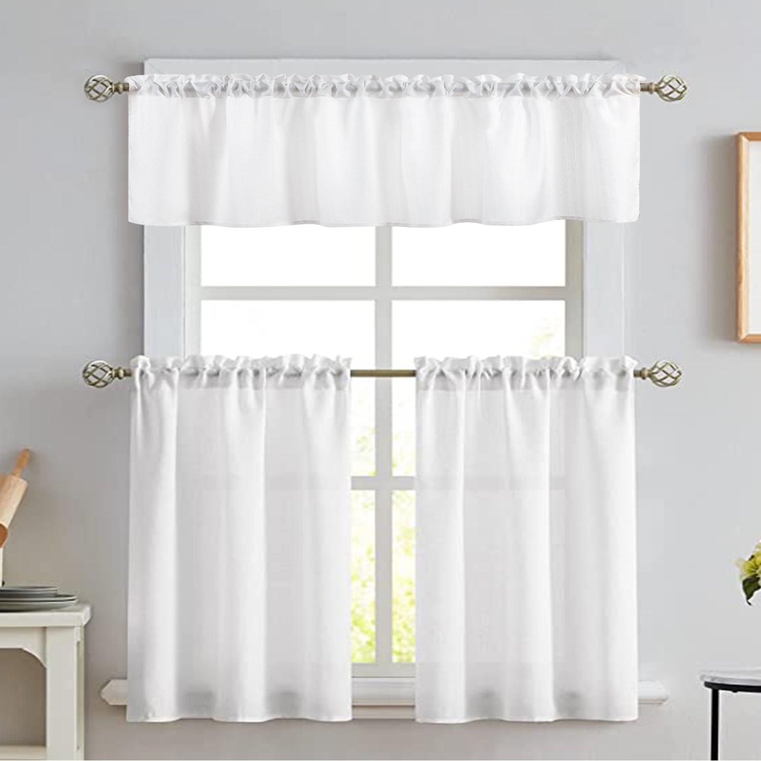 Topfinel Modern Semi Sheer Linen Valances & Tiers Kitchen Curtains